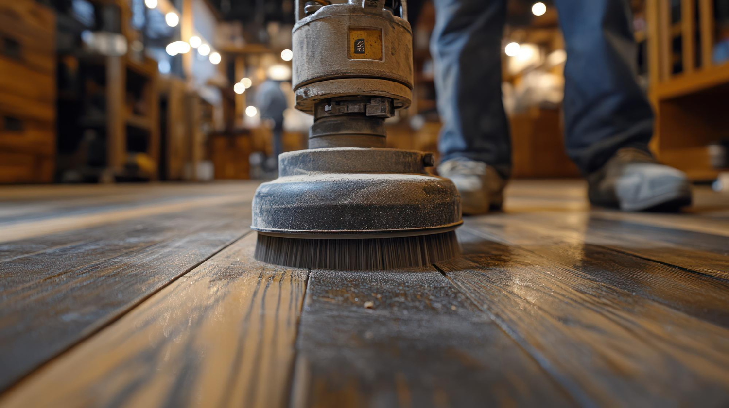 Damaged or uneven areas are repaired and blended seamlessly with the existing floor.